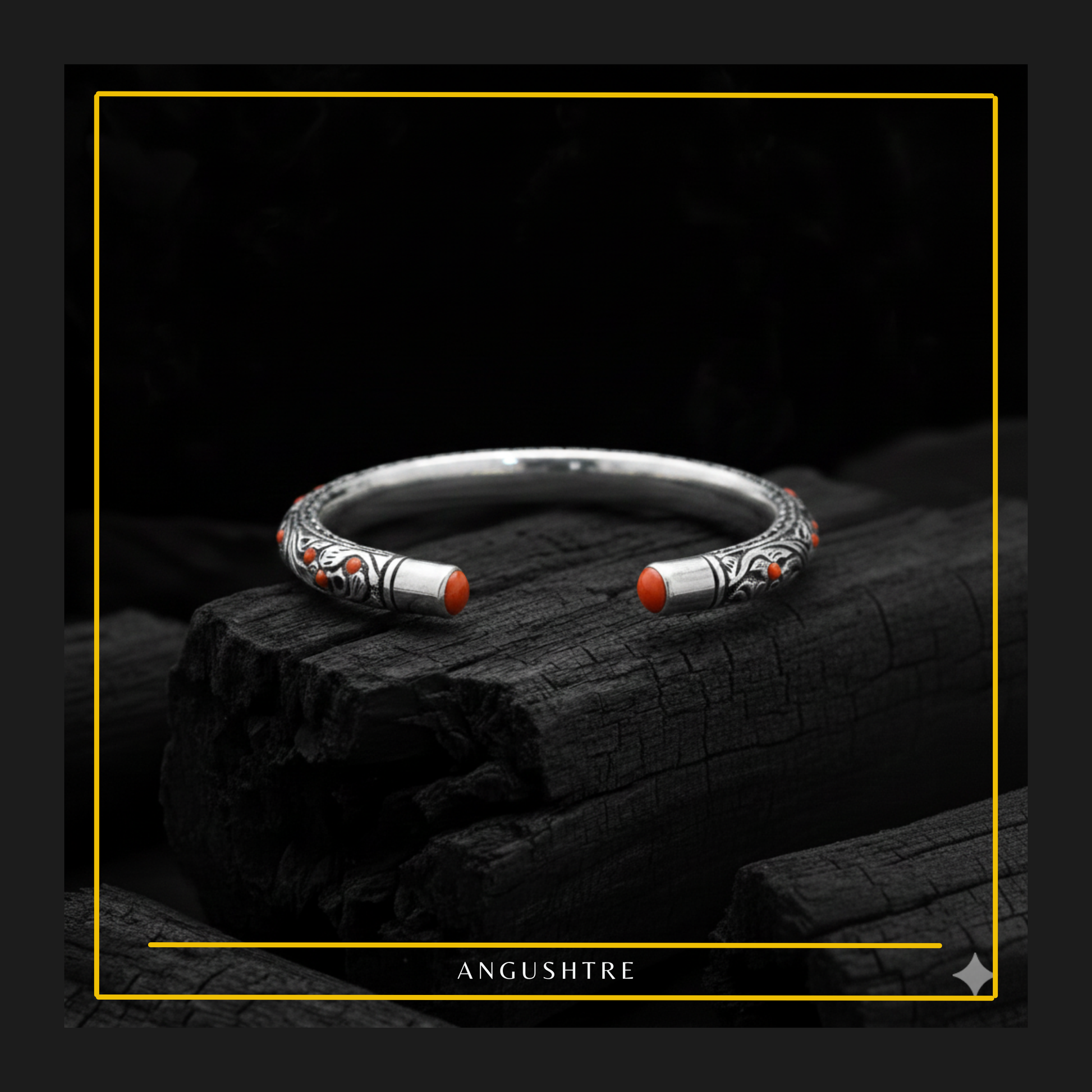 925 Sterling Silver Chitrali Bangle with Natural Marjaan Stones (Copy)