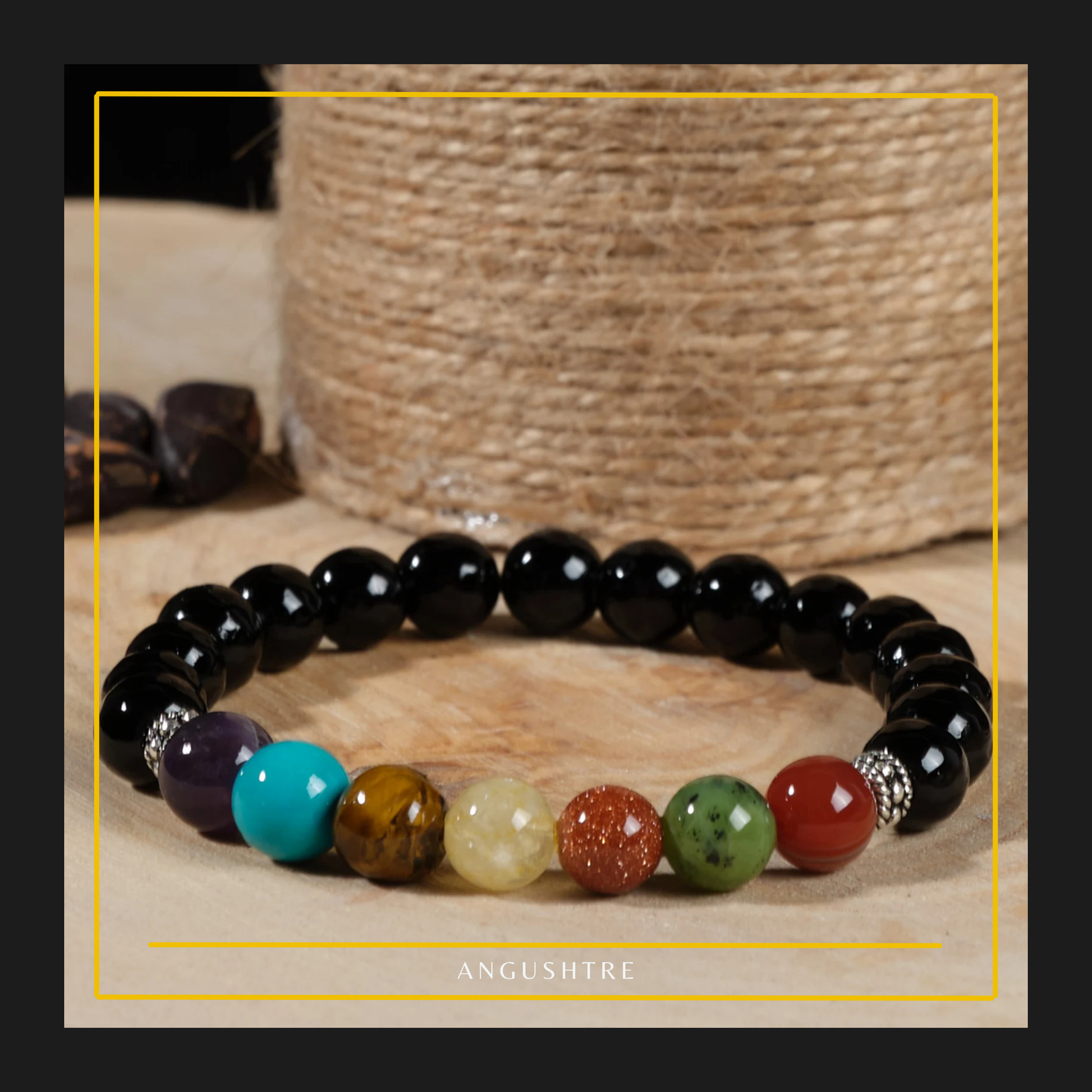 This handcrafted bracelet combines the protective power of natural Onyx with the healing energy of the 7 Chakra stones, creating the perfect fusion of strength and serenity.