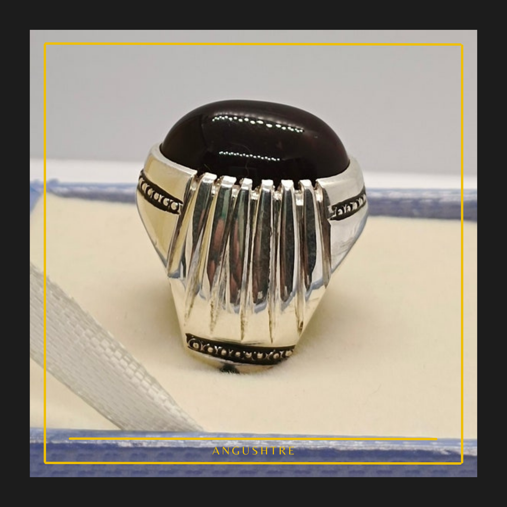 Introducing our exclusive Men’s Pure Silver Ring featuring the legendary Yumni Aqeeq gemstone, beautifully set with black American zircons on the sides.
