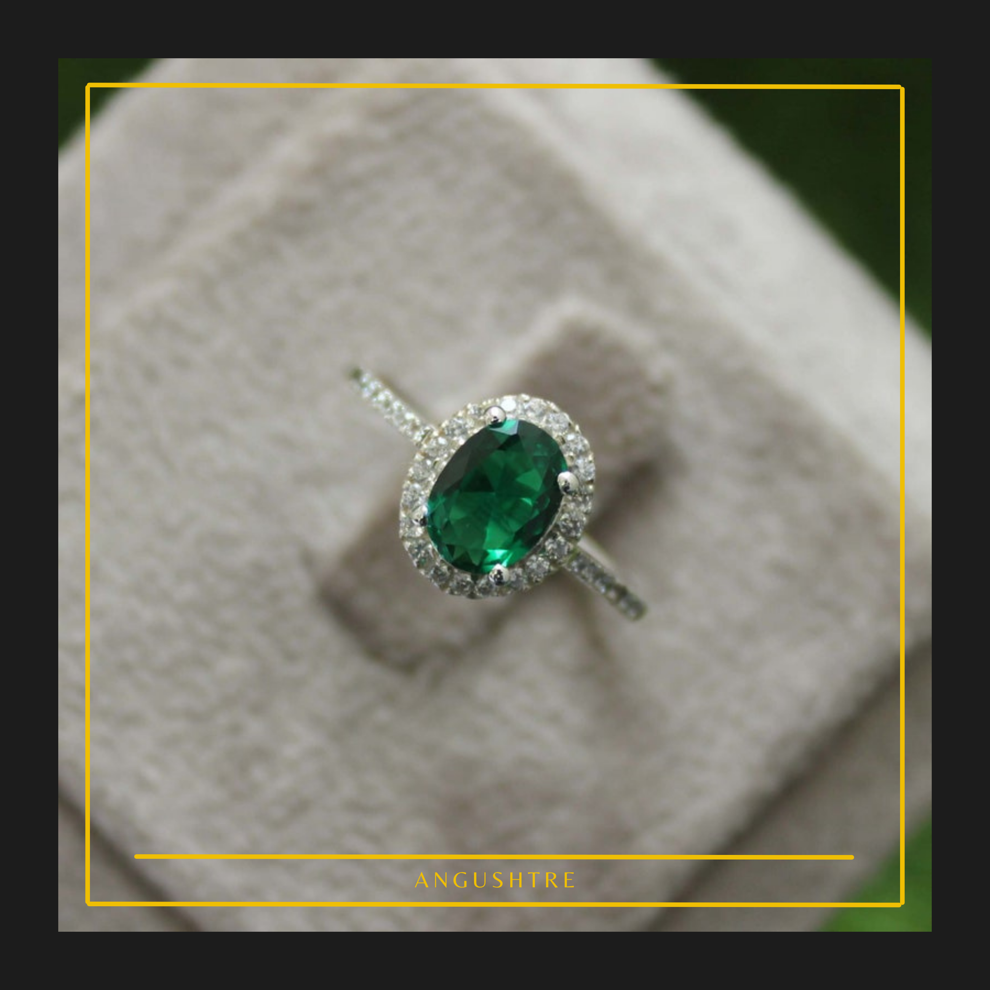 A bright white‑gold rhodium polish enhances shine and wearability while keeping the focus on the vivid green gemstone for gifting or special occasions